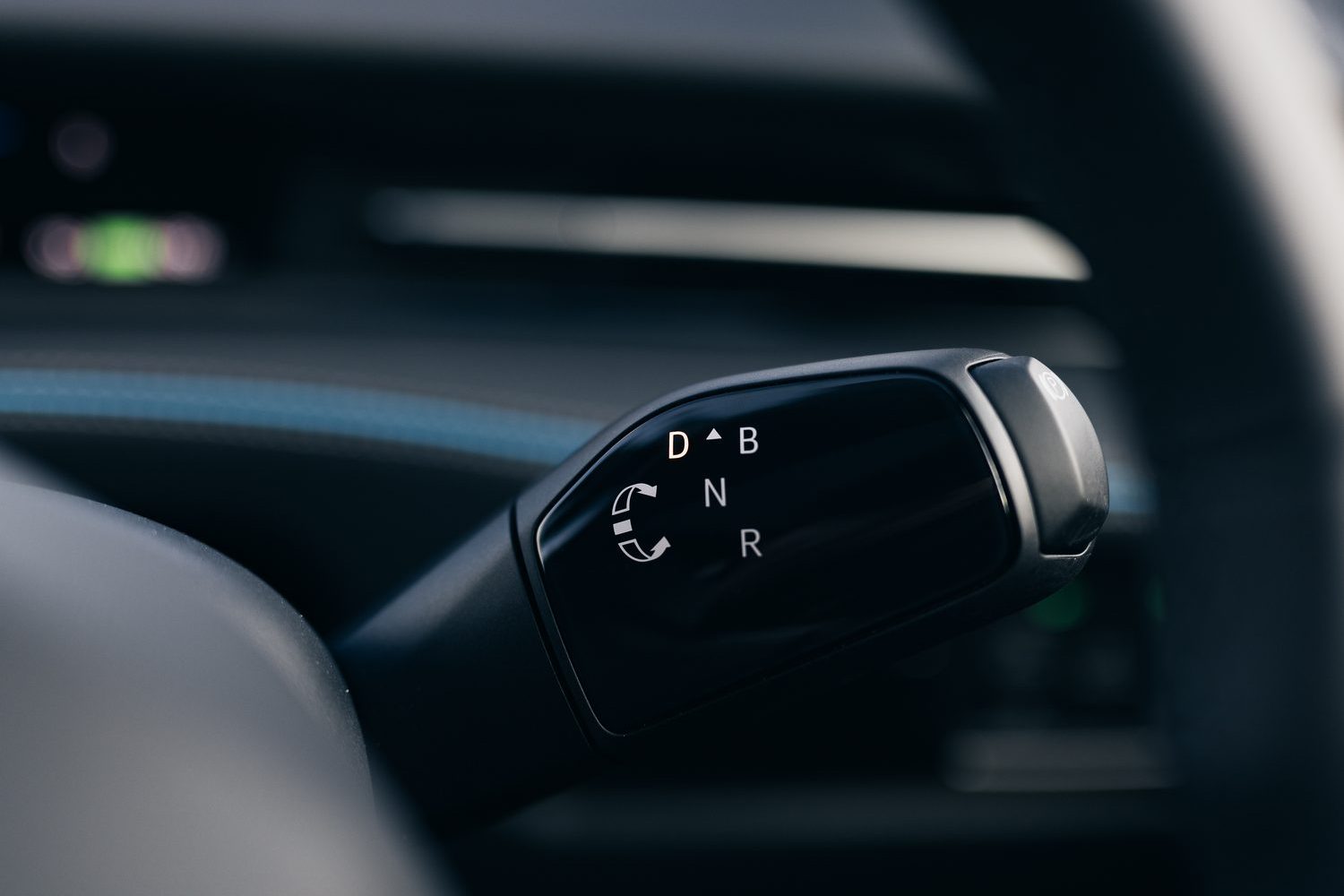 Interestingly, even though newer VW models like the ID.7 (which isn't available in the U.S. market) have moved the gear selector to a side stalk, they have still managed to implement a smooth and intuitive way to switch between D and B. I'm attaching a photo of the stalk in ID.7.