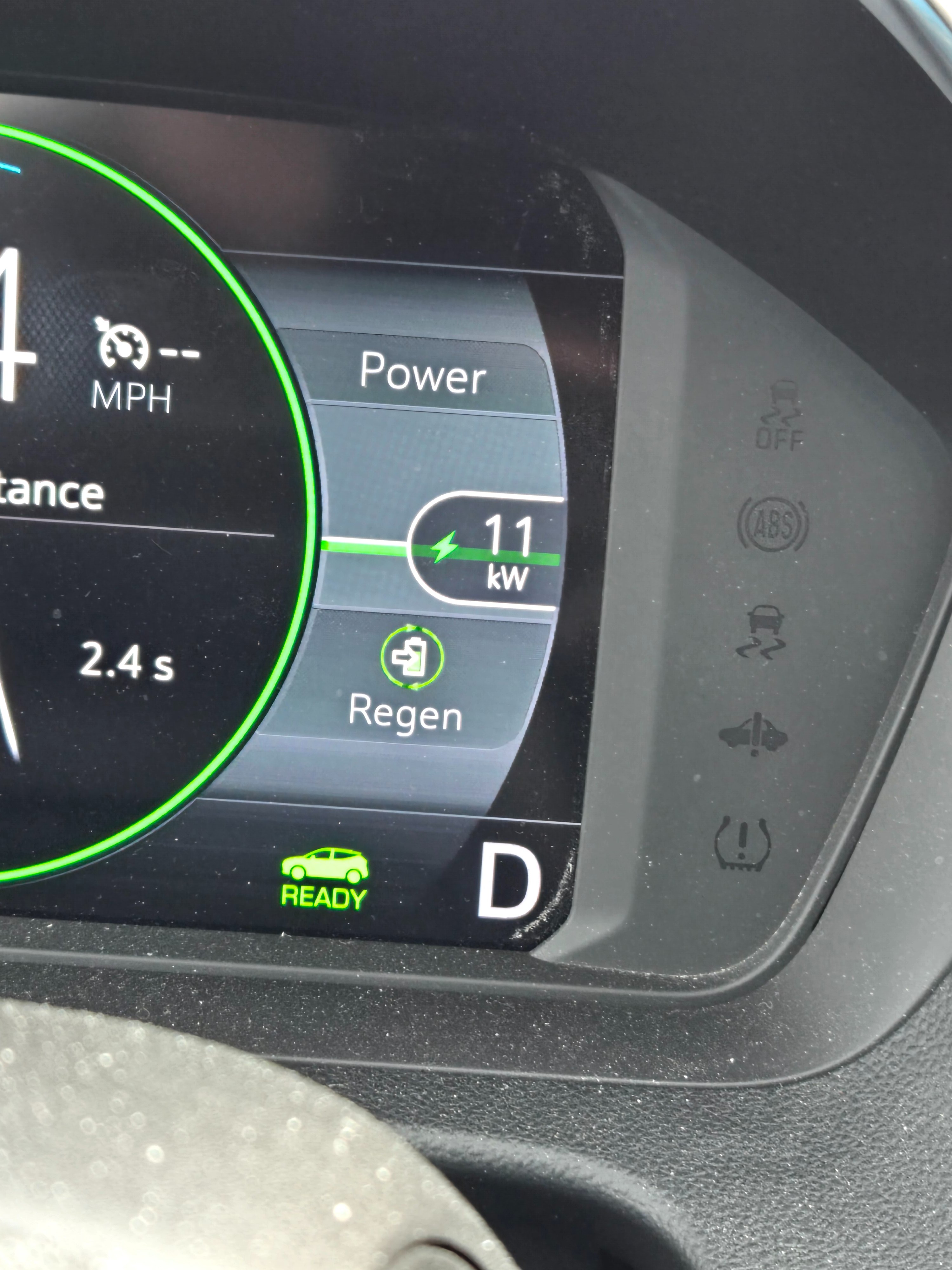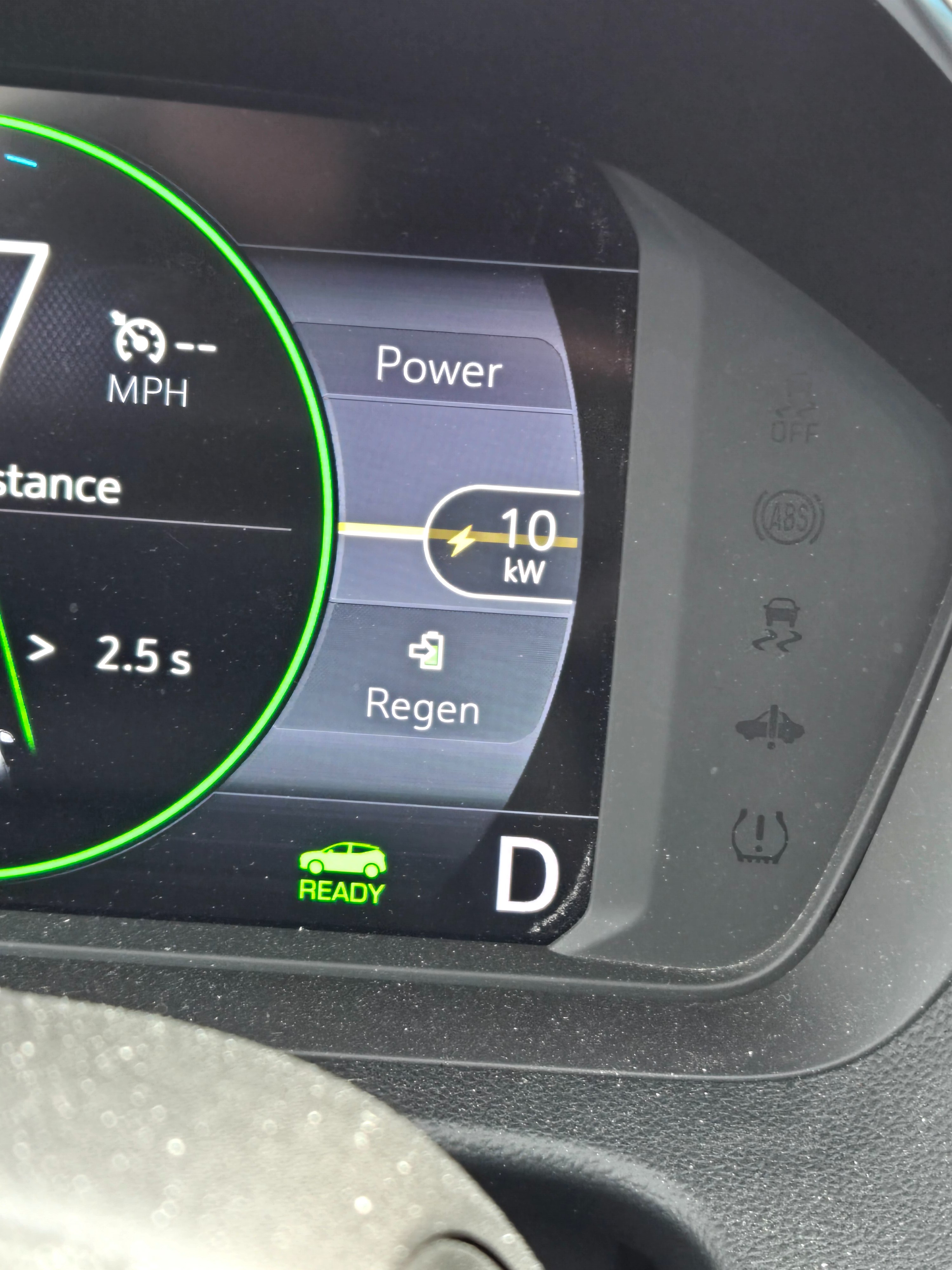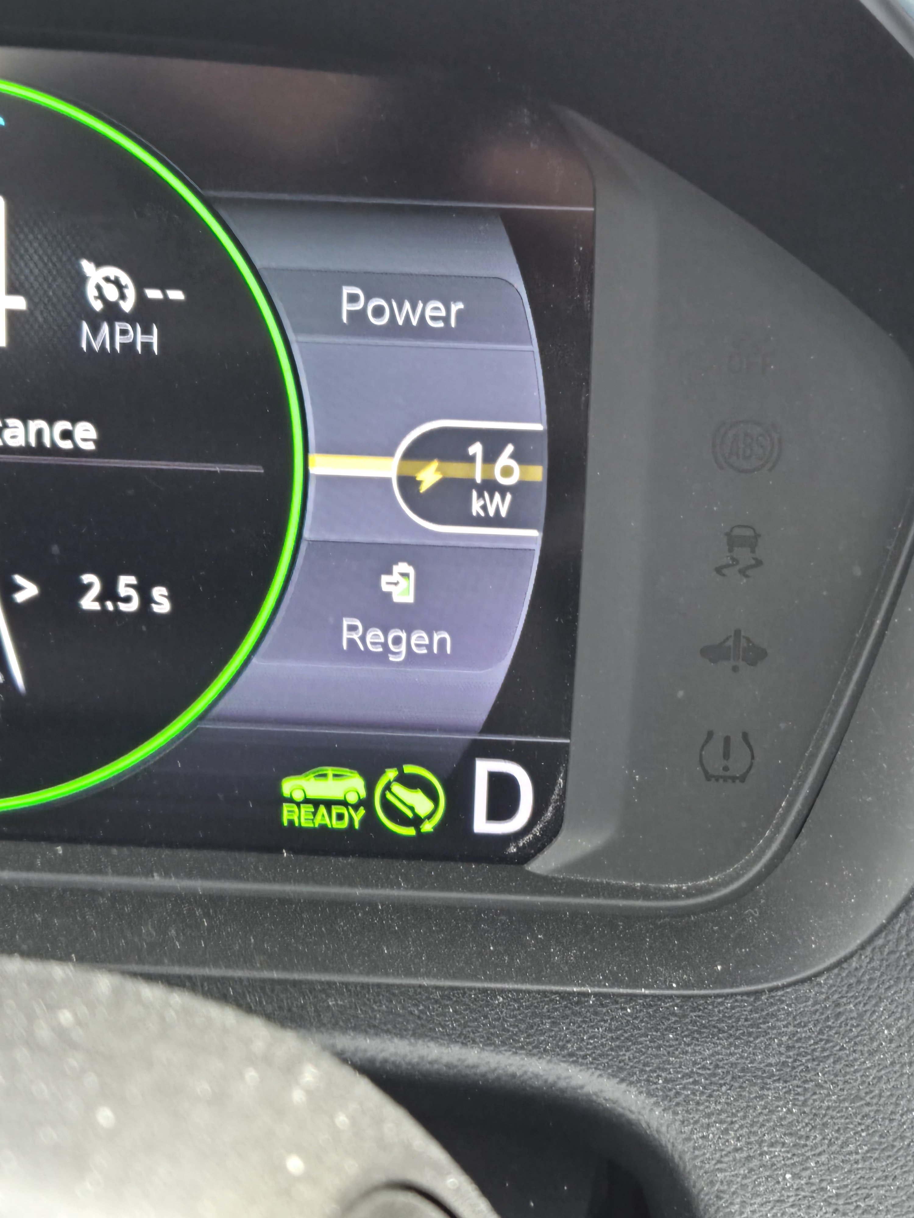 The highest level of regen I’ve seen in my car has been 107 but that was while going down an incredibly steep offramp using both the brake pedal and Regen on demand in one pedal drive, so it only stayed that high for a couple of seconds because the exit kind of snuck up on me. My highest regen in normal cases is in the mid 20s low 30s. If I take my foot fully off the pedal in one pedal drive if I slowly lift my foot off and allow the car to slow in one pedal it kind of tops out around 16-19
