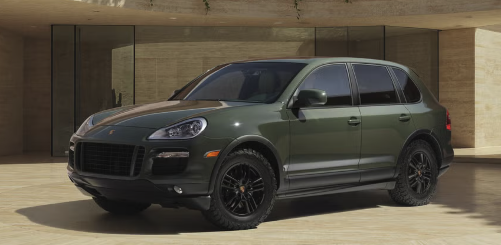 I'm loving this paint-to-sample color, blackolive, as seen on the first-generation Cayenne that Porsche Sonderwunsch restored.