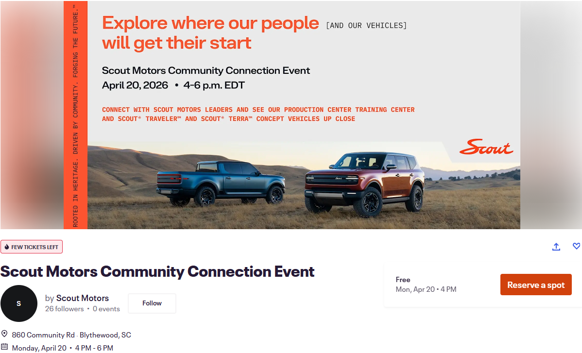 Additionally, Scout Motors wants to hear your feedback and speak directly to the rabid community of owners as unique as America. We'll use the Scout Community to deliver news and information on events and launch updates directly to the group. Although the start of production is anticipated in 2026, many new developments and milestones will occur in the interim. We plan to share them with you on this site and look for your feedback and suggestions.